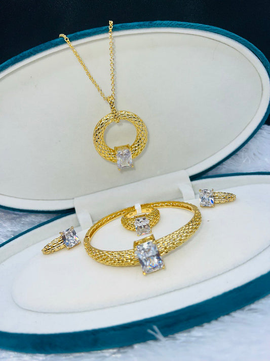 طقم فاخر مكوَّن من 4 قطع بلون ذهبي أنيق،
